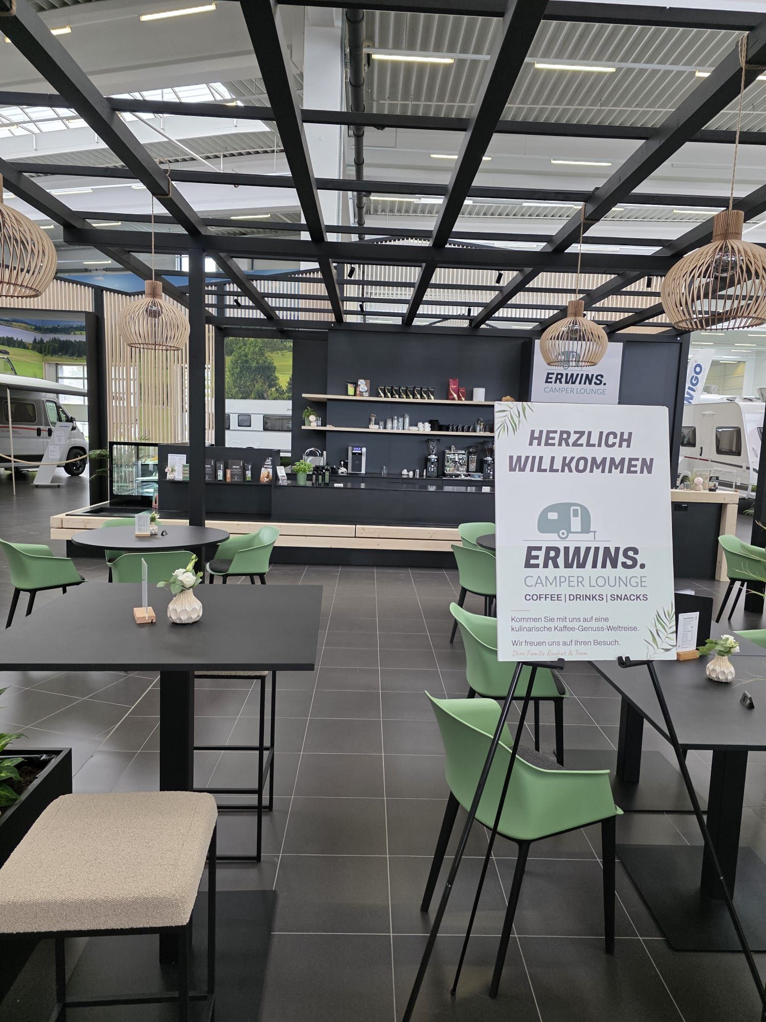 ERWINS. Camper Lounge ist eine gemütliche Espressobar mit Loungebereich und Genuss-Shop.
